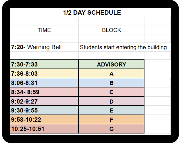1/2 Day Schedule